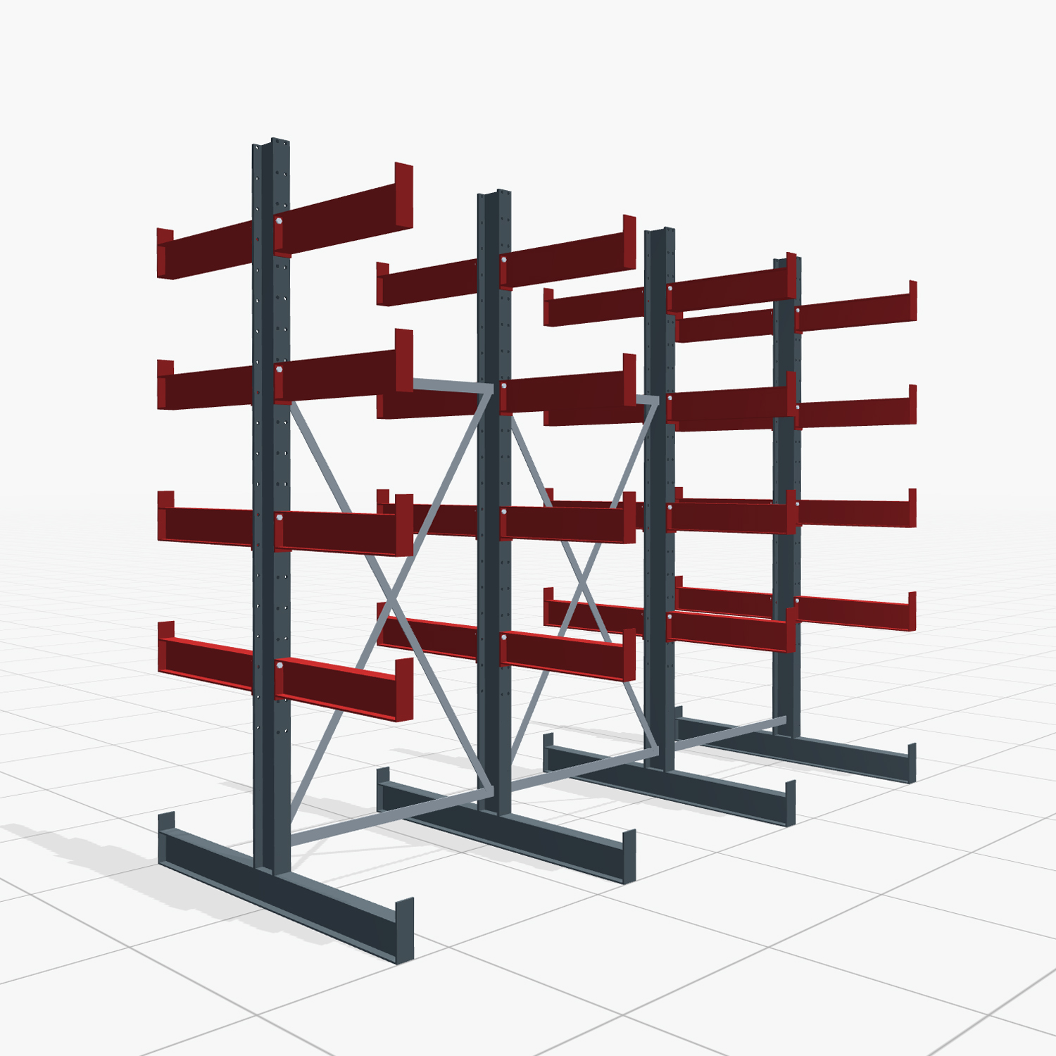 Sie können ein- oder zweiseitig konfiguriert werden, was eine optimale Raumausnutzung in Werkstätten, Lagern oder Produktionsstätten ermöglicht. Die Kragarme lassen sich in der Höhe verstellen, wodurch das Regal an unterschiedliche Materialgrößen angepasst werden kann. Es stehen im Konfigurator auch verschiedene Kragarmtiefen zur Auswahl.
