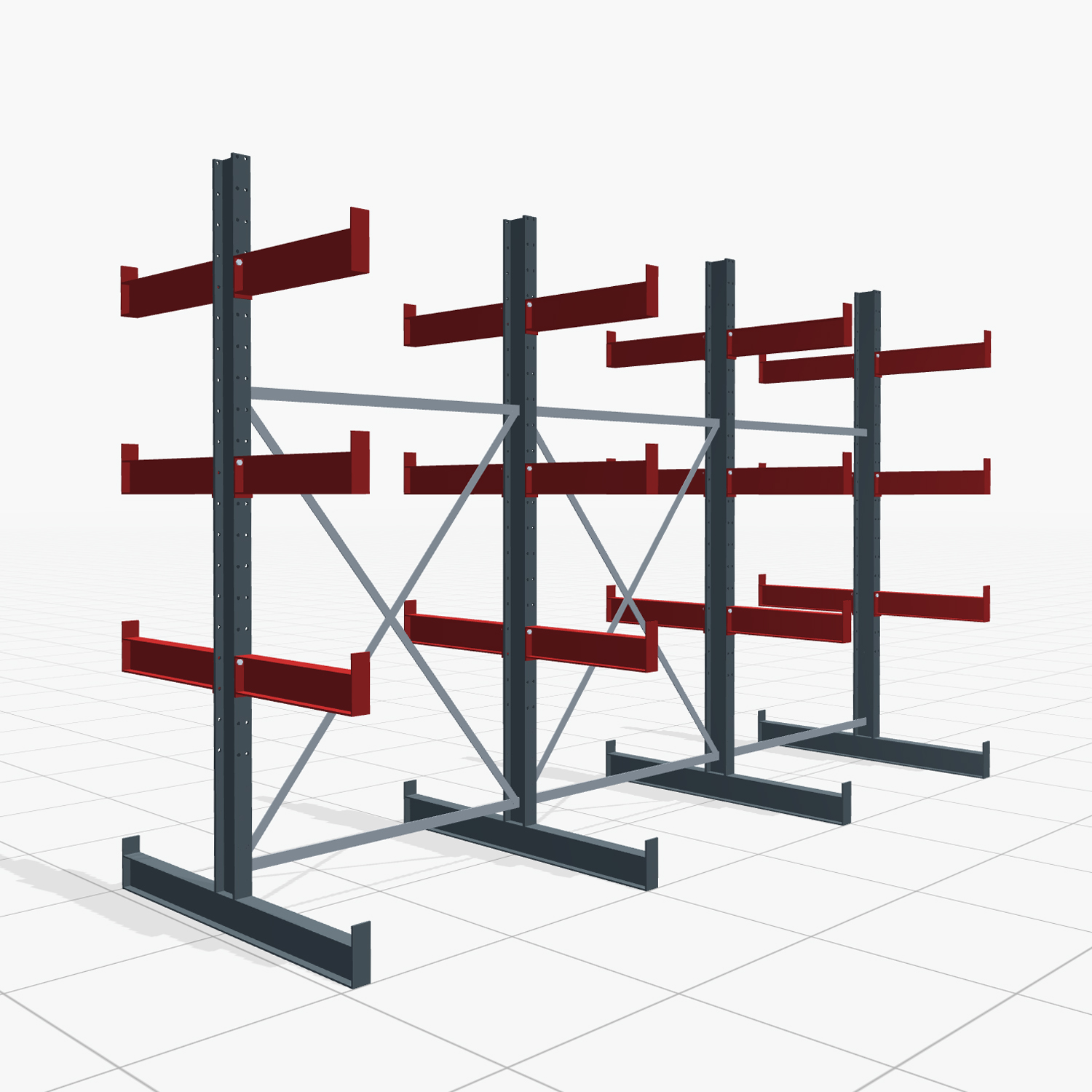 Kragarmregale Handbedient KHX 3000, H: 2.500 mm, B: 3.931 mm mm, Armlänge: 1.880 kg, Zweiseitige Nutzung