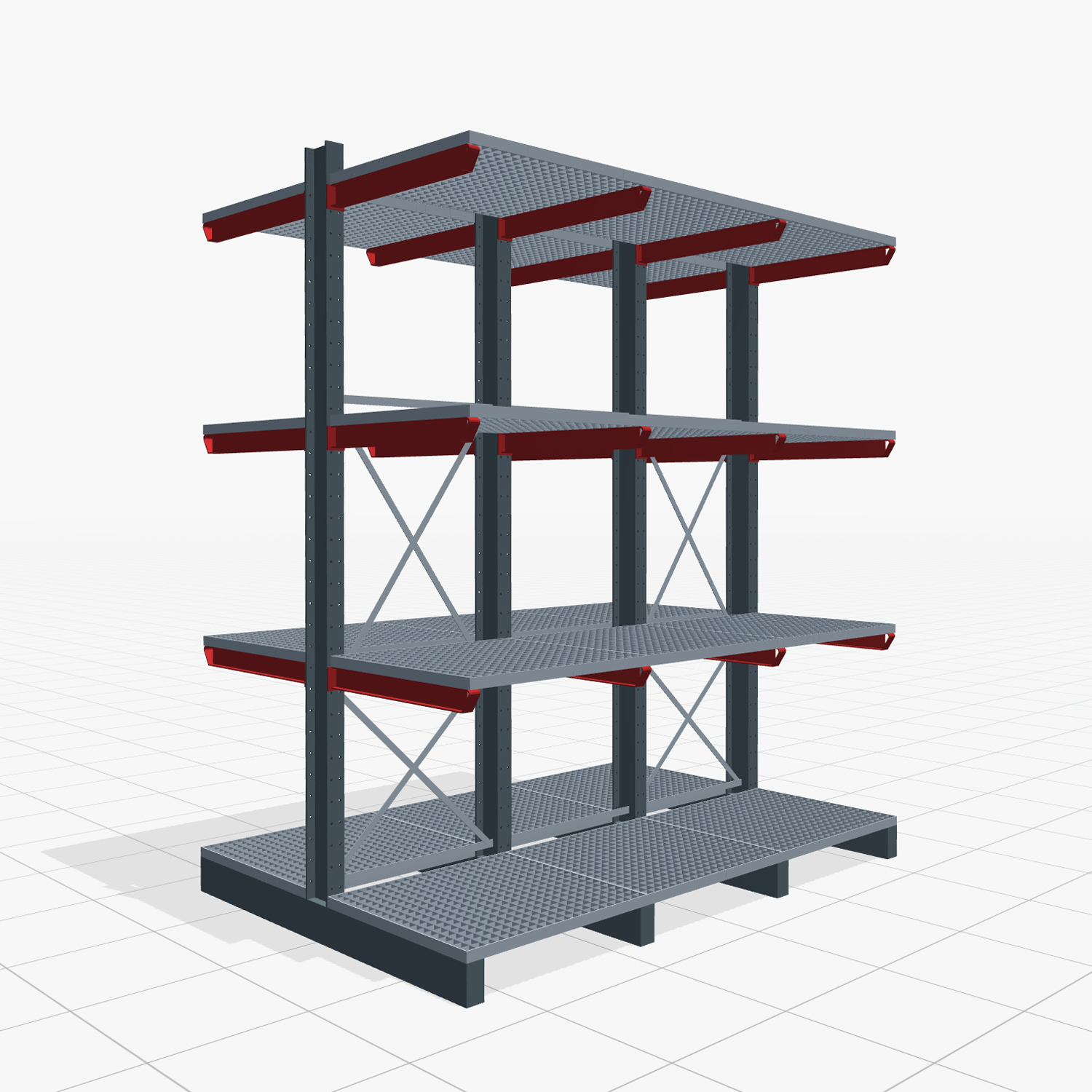Wähle, ob du Gitterrostböden als Auflage auf deinen Kragarmen auflegen möchtest. Dies dient zum Beispiel als Schutz bei herabfallenden Teilen oder als Auflage für Teile, welche nicht direkt auf den Kragarmen gelagert werden können.
