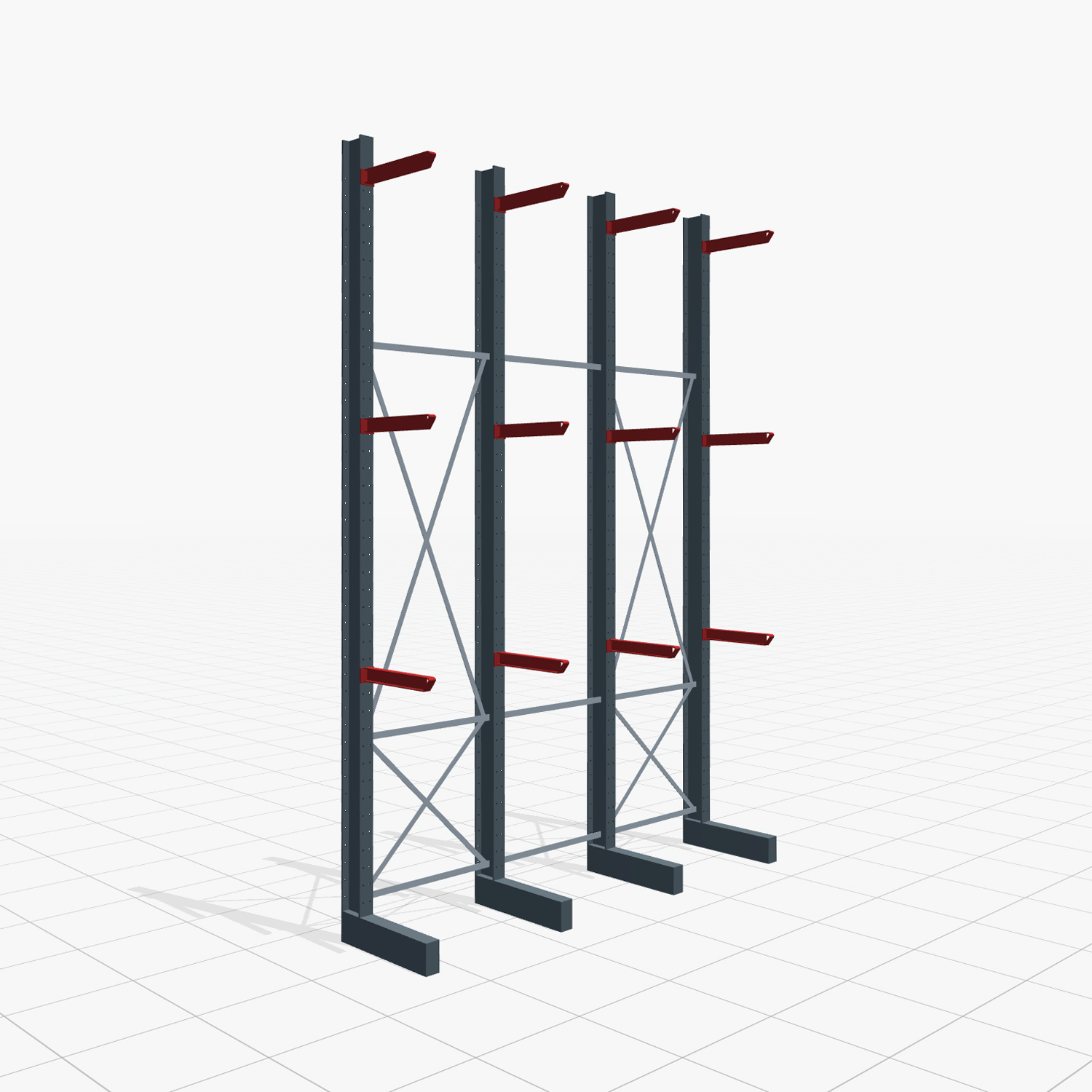 Wähle, ob du Gitterrostböden als Auflage auf deinen Kragarmen auflegen möchtest. Dies dient zum Beispiel als Schutz bei herabfallenden Teilen oder als Auflage für Teile, welche nicht direkt auf den Kragarmen gelagert werden können.