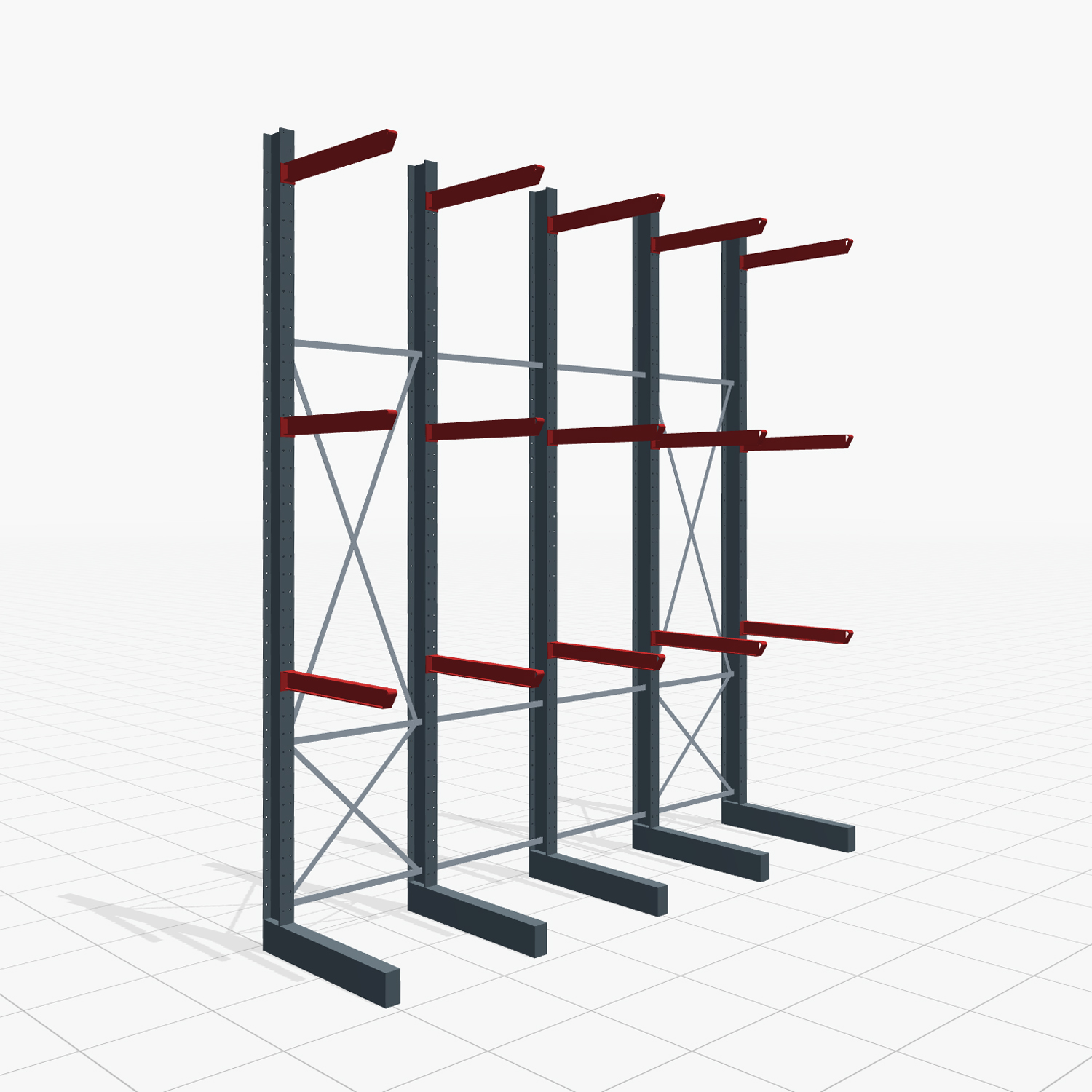 Wähle, ob du Gitterrostböden als Auflage auf deinen Kragarmen auflegen möchtest. Dies dient zum Beispiel als Schutz bei herabfallenden Teilen oder als Auflage für Teile, welche nicht direkt auf den Kragarmen gelagert werden können.