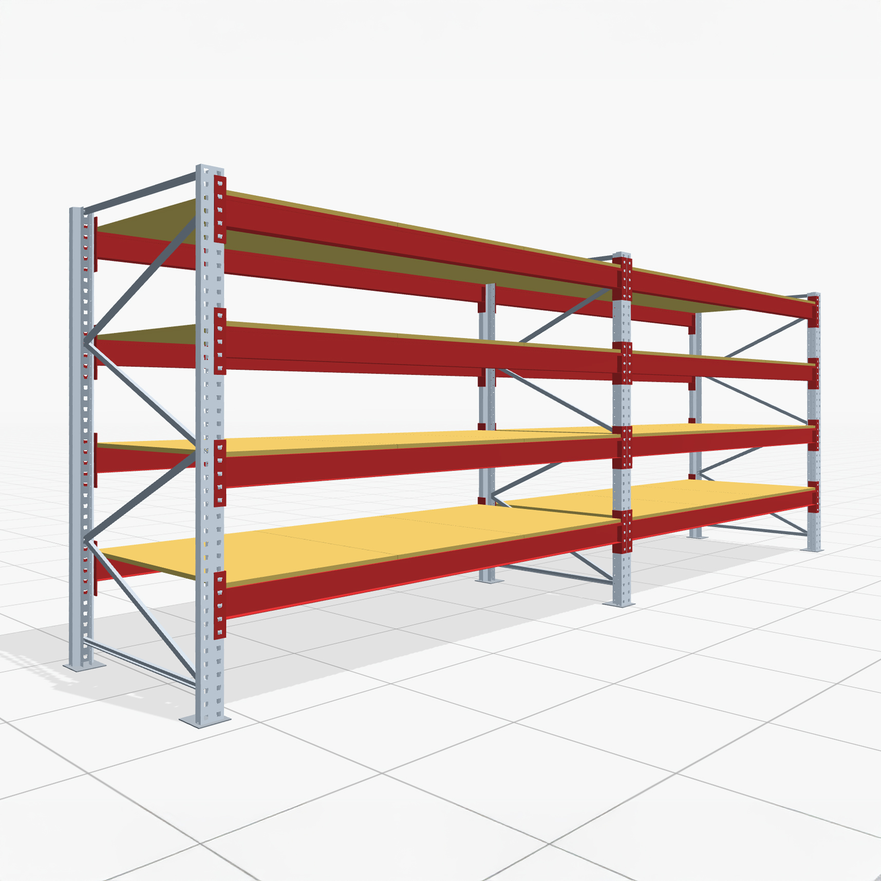 Wähle die passende Anzahl Ebenen pro Feld. Du kannst die Träger individuell in der Höhe platzieren. Auch auf der Bodenebene kannst du Ware einlagern.