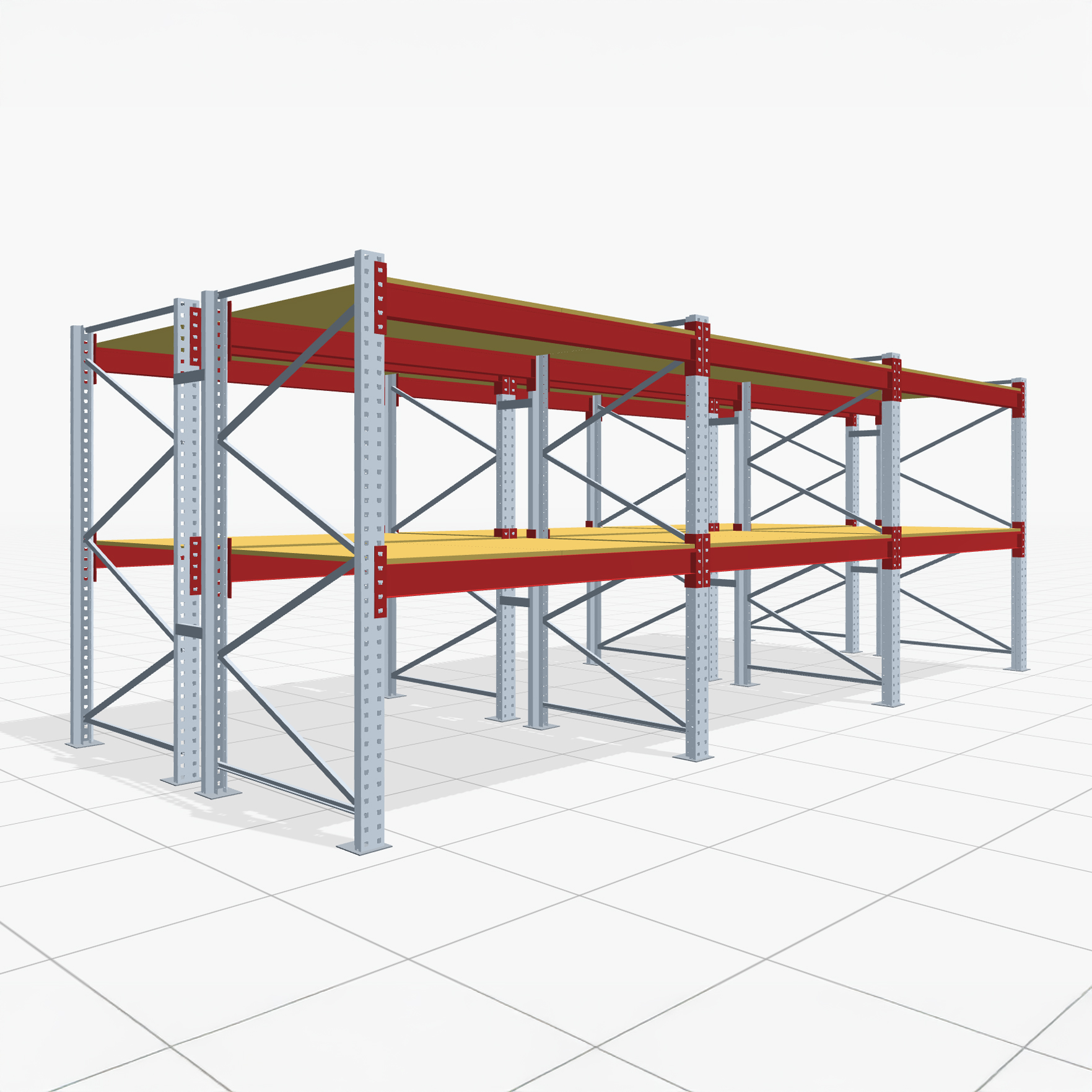 Wähle die passende Anzahl Ebenen pro Feld. Du kannst die Träger individuell in der Höhe platzieren. Auch auf der Bodenebene kannst du Ware einlagern.