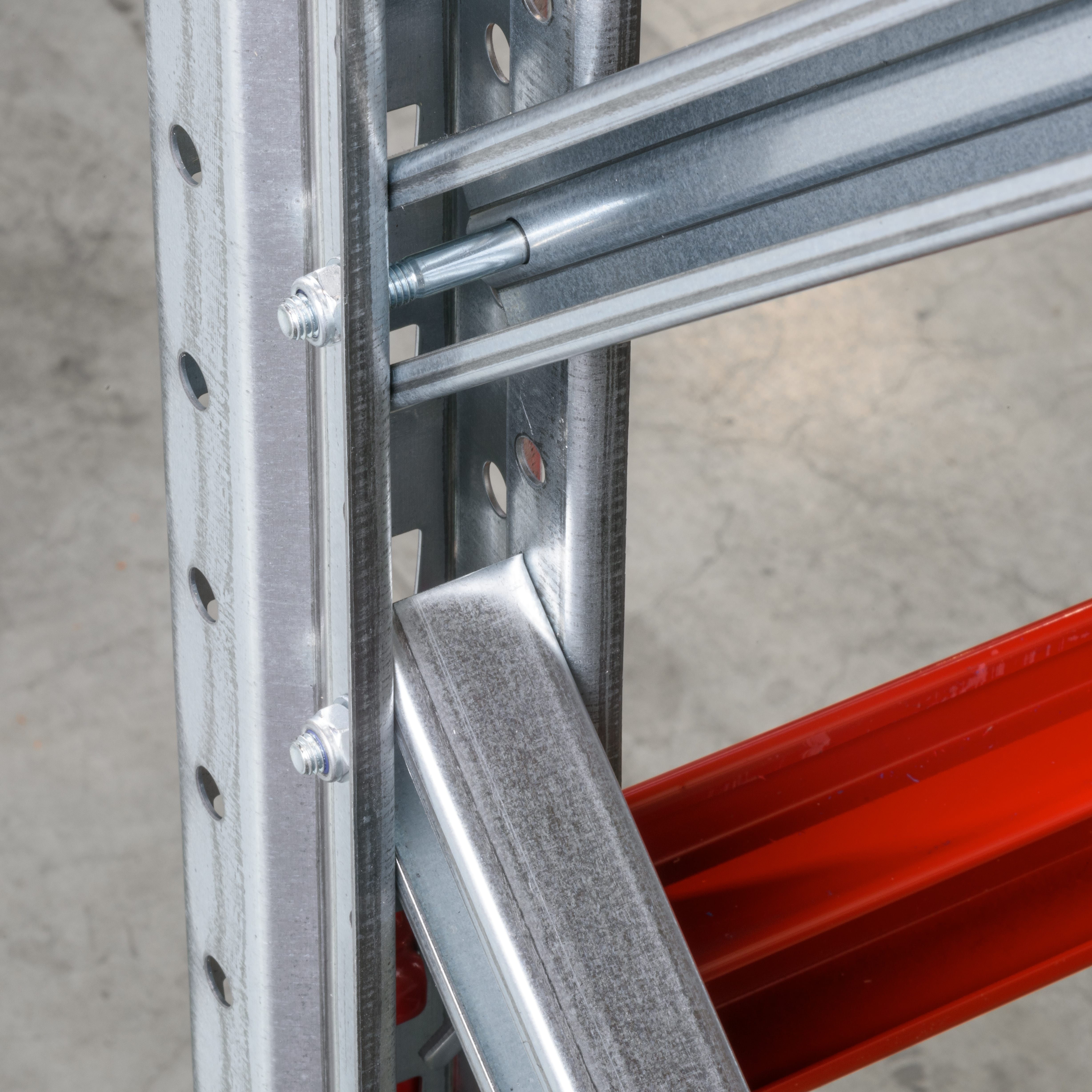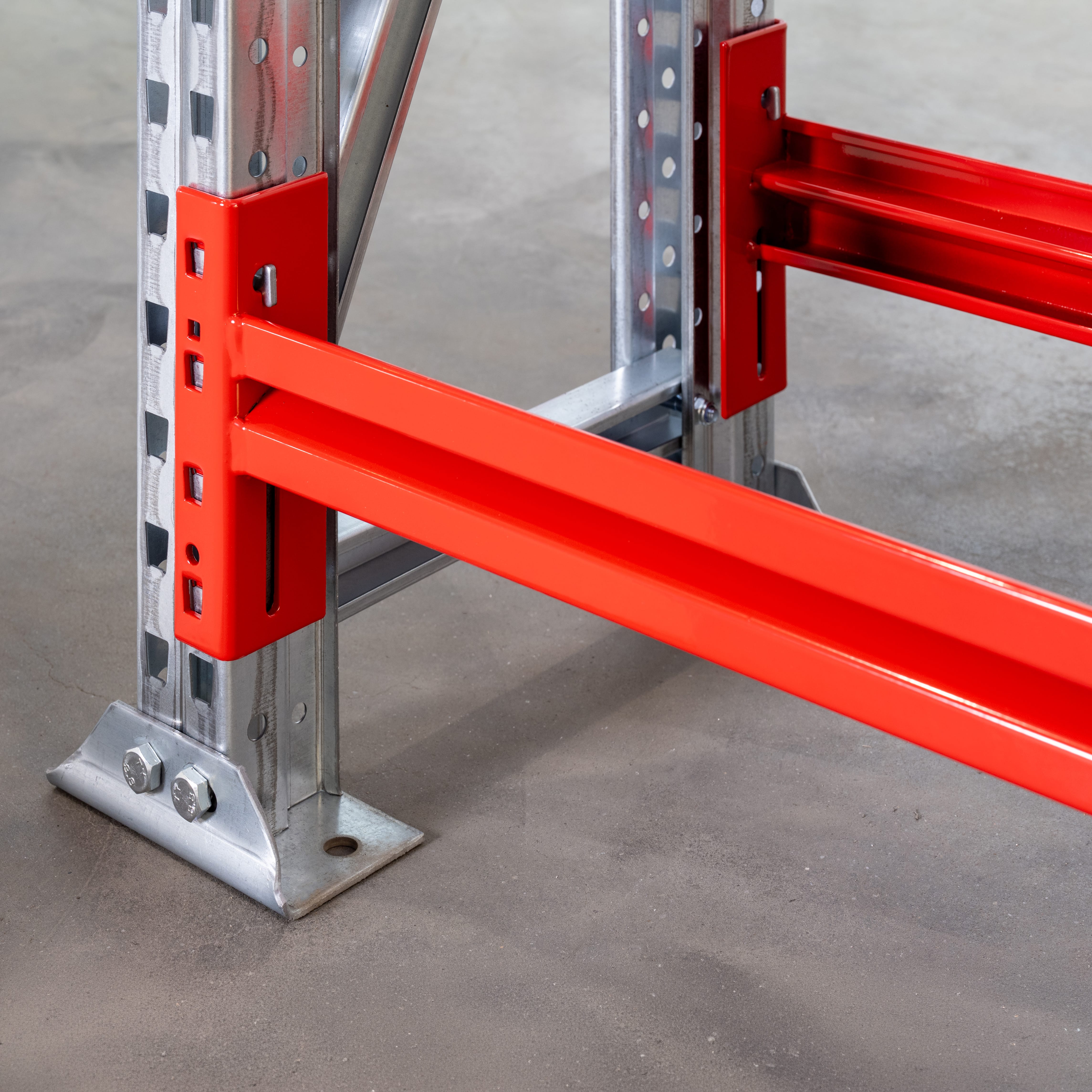 Es gibt Ersatzteile wie Querträger, Stützrahmen, Fußplatten, Sicherungsclips und Anfahrschutz.